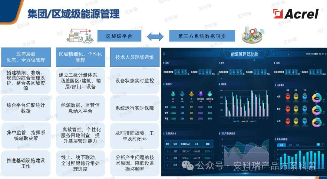 安科瑞EMS3.0企业微电网能效管理平台,是一个集数据采集、监控、分析和优化控制于一体的数字化解决方案。它主要通过以下几个方面赋能零碳园区的建设: