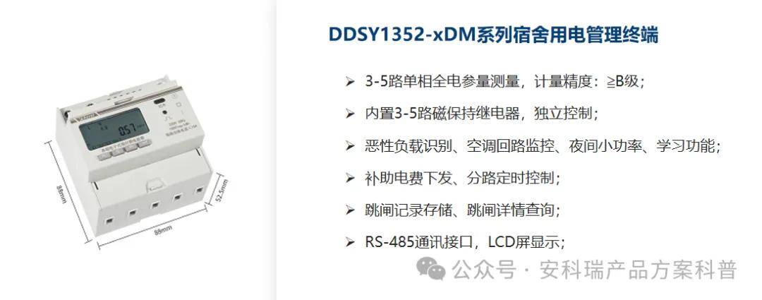 宿舍用电监管升级:预付费电表附带的恶性负载识别功能,可以监测如吹风机、电饭锅、电磁炉和热得快等大功率电器,可在管理系统中报警提示,实现宿舍用电的远程监管,提高学校的管理效率和学生用电**。