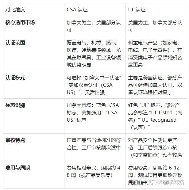 如果想做美加双市场:两种选择 —— 要么选 “CSA US 双重认证”(一次测试,同时获得美加认可,性价比高),要么选 UL 认证(需额外申请加拿大认可,成本更高),建议根据产品类型决策:燃气、工业类产品选 CSA US,消费电子类可选 UL。